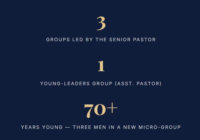 One detail that stays with me: three men, all over seventy years old, have formed a MicroGroups with the Senior Pastor.